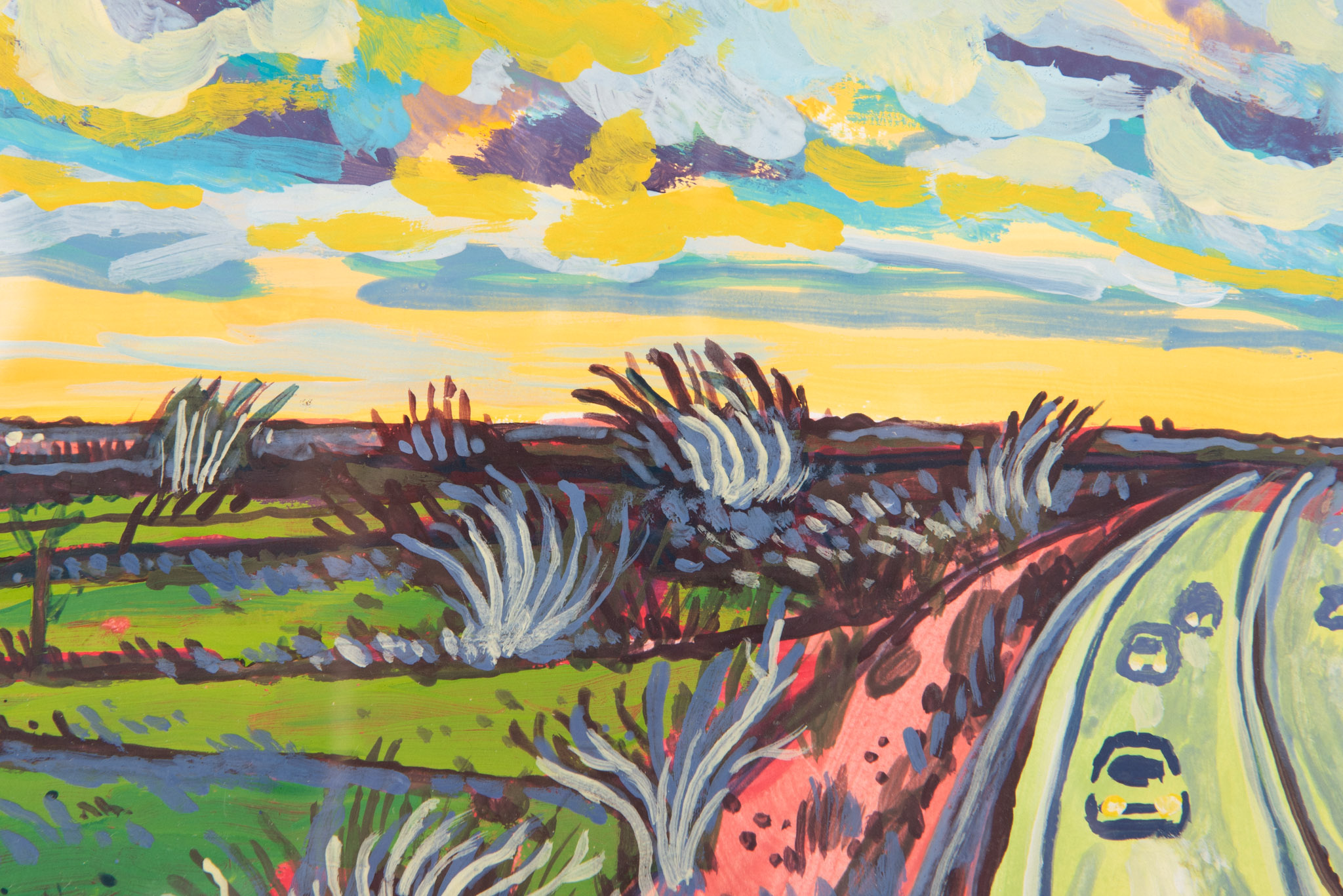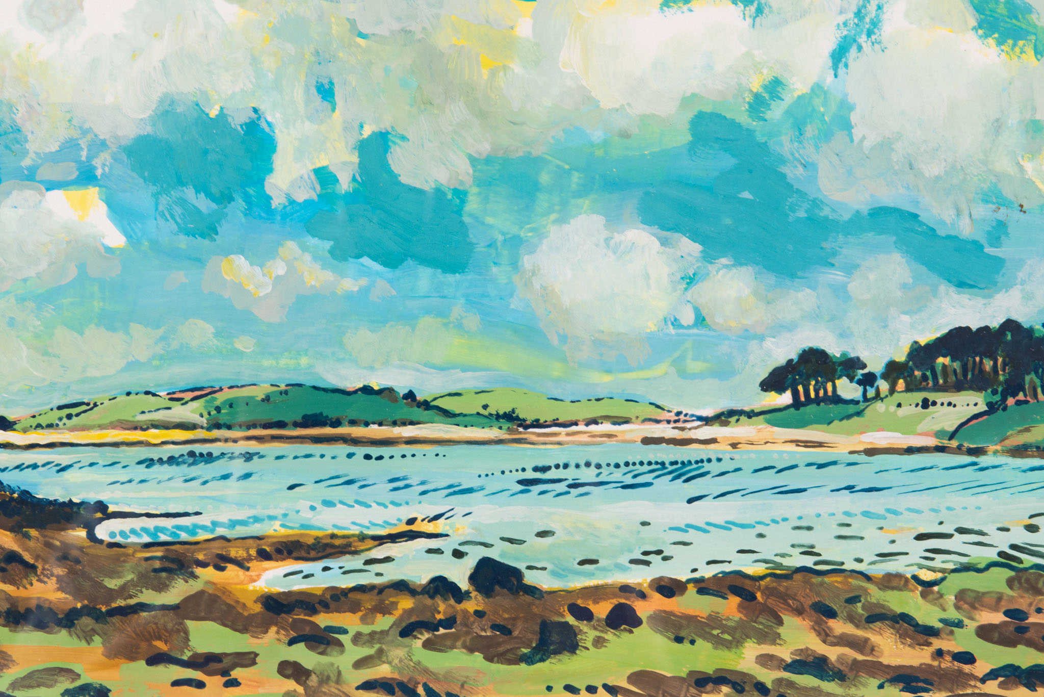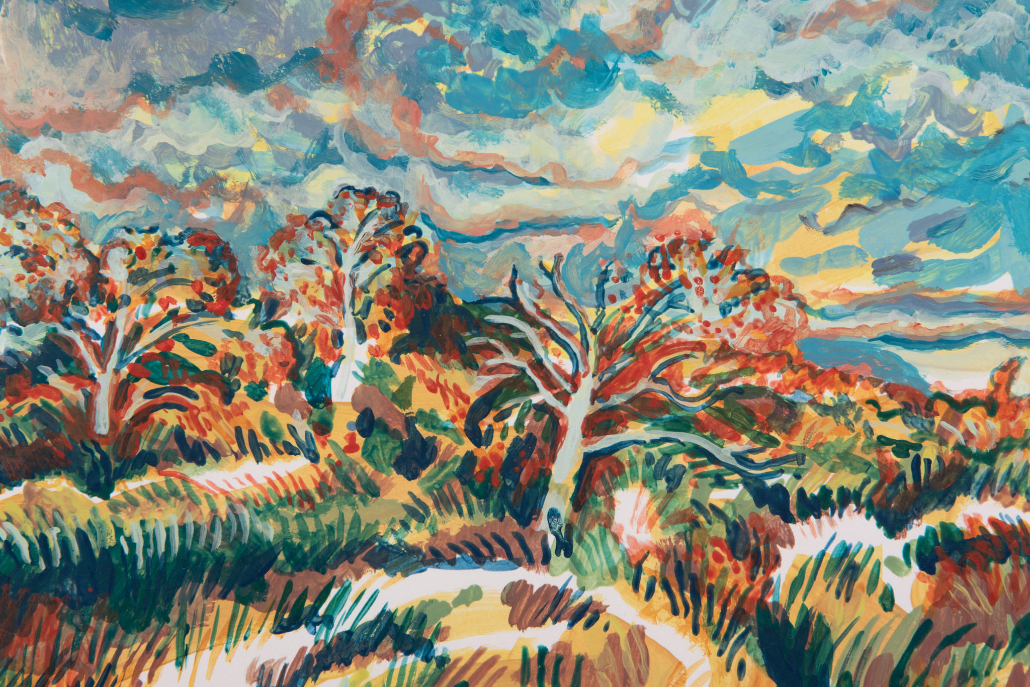 Les paysages qu’il compose à la gouache portent la marque vibrante de cette trajectoire, l’apaisant plaisir de la contemplation et la capacité à se tenir au présent de l’instant.