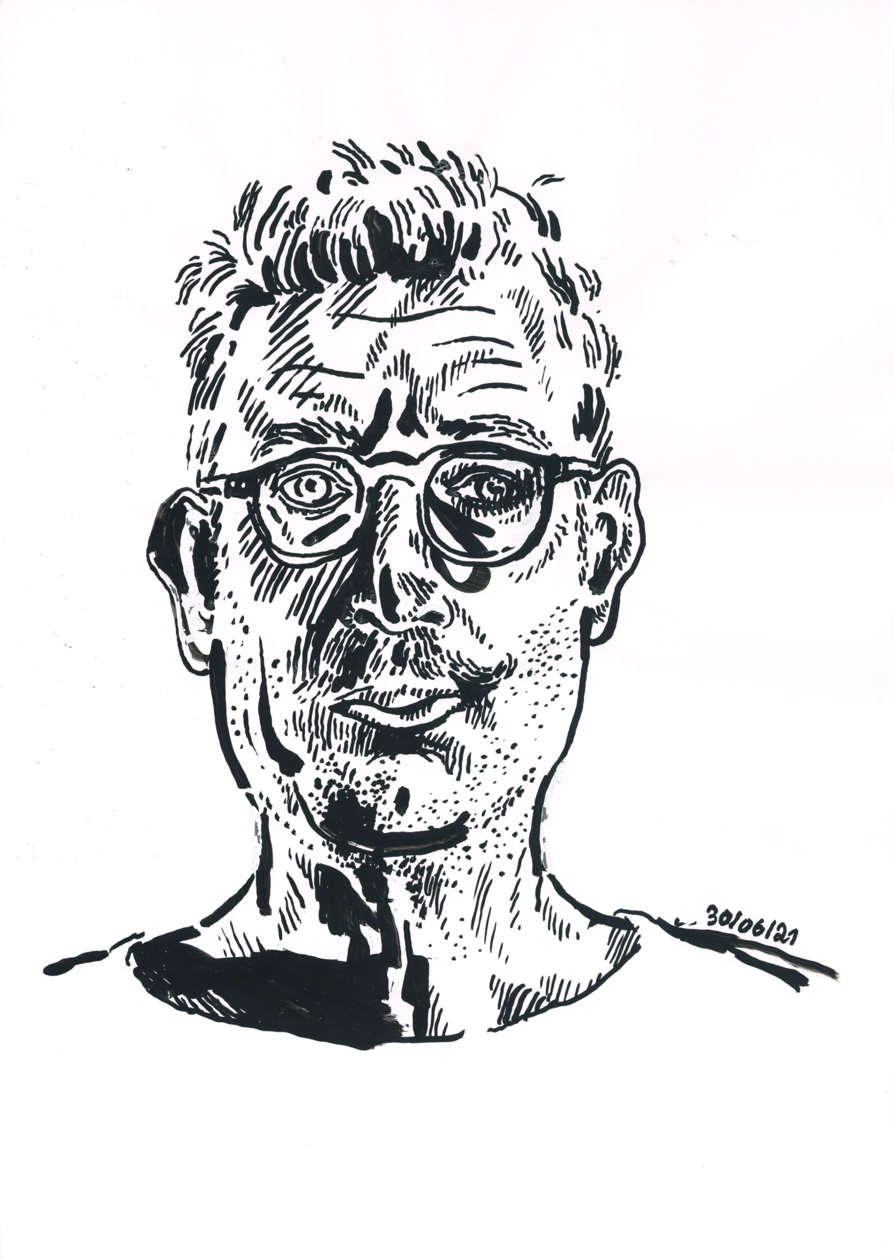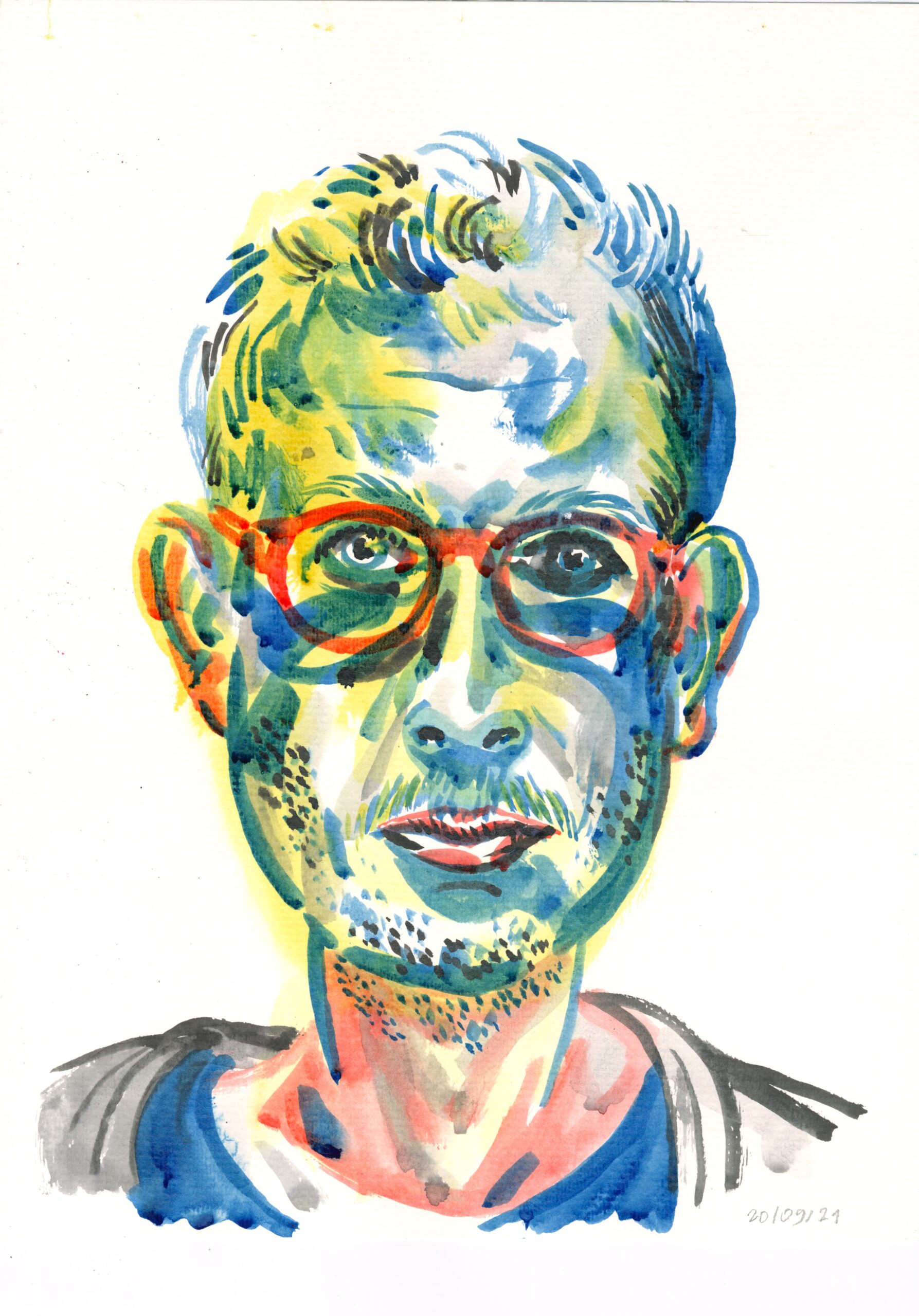 Dans l’épreuve de l’écriture de cette thèse, il engage un travail introspectif et particulièrement personnel qui prend la forme d’une impressionnante série d’autoportraits. Ses explorations graphiques et la (re)découverte de techniques variées le conduisent aujourd’hui à une pratique de la peinture et de la couleur.